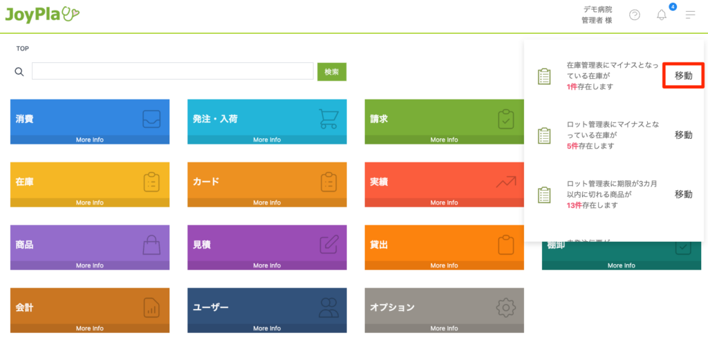 正しい在庫数に変更すると、お知らせの「マイナス在庫」通知が自動的に消えます。