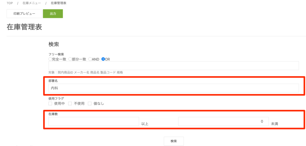 ・商品が多い場合は、部署名を指定し部署ごとに確認することを推奨します。