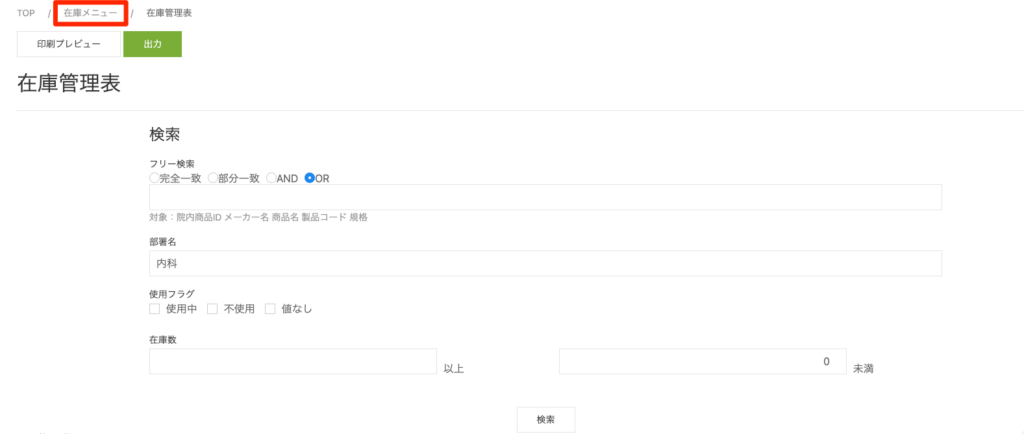 ①在庫メニューをクリックする