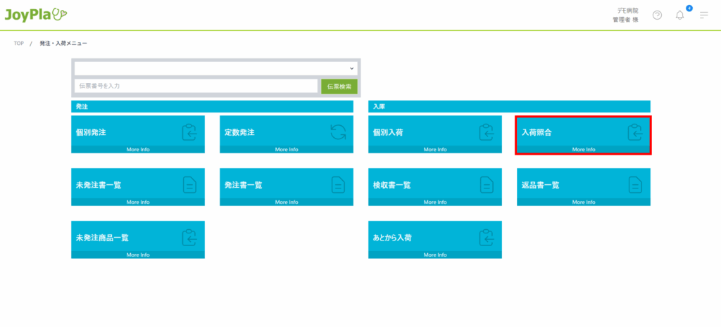 発注日時別・卸業者毎に入荷照合を行うことが可能で、ロット情報の登録が必要ない商品は、入荷可能数を一括反映することも可能です。