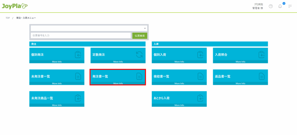 発注・入荷パネルをクリックする
